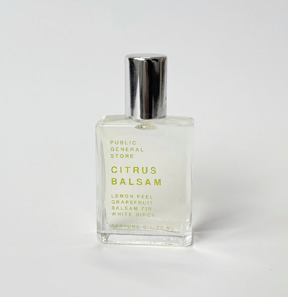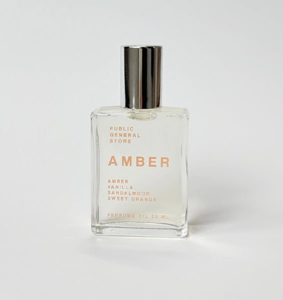 Hand blended fragrance + essential oils in fractionated coconut oil by Public General Store.