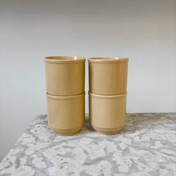 Set of 4 vintage stoneware tumblers from the 70’s. 3.5” tall x 3.25” wide